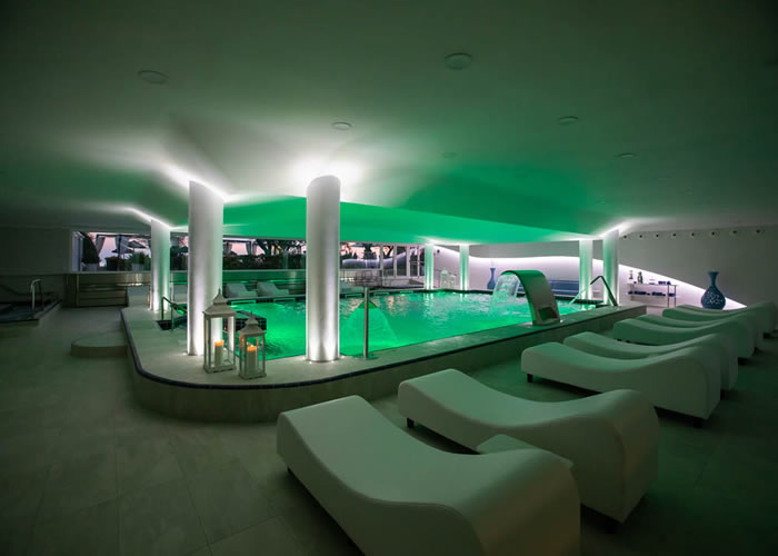 – Il percorso benessere include l’uso di piscina con cascata cervicale idromassaggio a seduta e chaise longue, bagno di vapore, bagno mediterraneo, sauna, docce polisensoriali, frigidarium, percorso Kneipp, jacuzzi, relax in area piscina e tisaneria