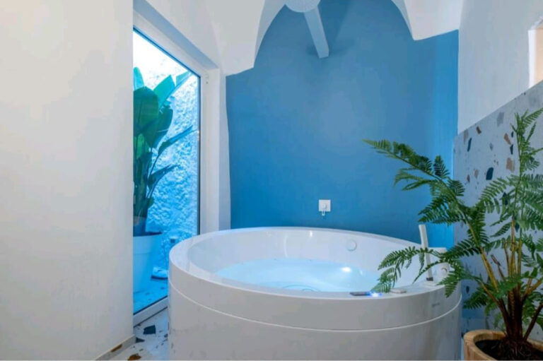 Dimora di Charme per soggiorni di coppia propone Suite di classe con vasca idromassaggio quadrata situata in palazzo storico a Ostuni...
